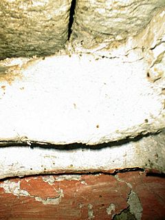 | The second photograph ever taken of the interior of the Temple XX tomb. Christopher Powell, Palenque Project Field Supervisor, has inserted the camera at arm's length through a 10cm x 10cm hole in an upper corner of the tomb. As in his first photograph (featured previously), the flash has caught the capstones directly opposite. But because Chris has rotated the camera a few degrees downward, it is now possible to see the red fresco of the wall. |
