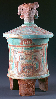 References: Bell, Ellen E. 2005. "Building a Dynasty: Early Classic Kingship at Copan." In Virginia M. Fields and Dorie Reents-Budet, Lords of Creation: Origins of Sacred Maya Kingship. London and Los Angeles: Scala. Agurcia Fasquelle, Ricardo 2005. "Rosalila: Temple of the Sun King at Copan." In Fields and Reents-Budet, Lords of Creation: Origins of Sacred Maya Kingship. Bell, Ellen E., Robert J. Sharer, Loa P. Traxler, David W. Sedat, Christine W. Carrelli, and Lynn A. Grant. 2004. "Tombs and Burials in the Early Classic Acropolis at Copan." In Bell et al., Understanding Early Classic Copan, 151-54. Reents-Budet, Dorie, Ellen E. Bell, Loa P. Traxler, and Ronald L. Bishop. 2004. "Early Classic Ceramic Offerings at Copan. In Bell et al., Understanding Early Classic Copan, 181-90, fig. 9.14. Coggins, Clemency C. 1975. "Painting and Drawing Styles at Tikal: An Historical and Iconographic Reconstruction." Ph.D. dissertation, Harvard University. Coe, William R. 1990. Excavations in the Great Plaza, North Terrace, and North Acropolis of Tikal. Tikal Report 14. 6 vols. Philadelphia: University of Pennsylvania Museum. Culbert, T. Patrick 1993. The Ceramics of Tikal: Vessels from the Burials, Caches, and Problematic Deposits. University Museum Monographs 81. Philadelphia: University of Pennsylvania, fig. 19c. Martin, Simon, and Nikolai Grube. 2000. Chronicle of the Maya Kings and Queens. London: Thames & Hudson, 29-33. |