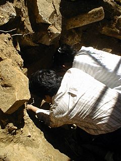 Restoration experts Alfonso Cruz and Marcia Valle at work on the newly discovered bench in Temple XIX.