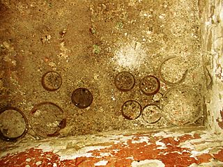 Jade beads and circular offering plates on the floor of the the Temple XX tomb.