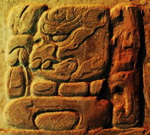 | Mark Van Stone (personal communication, 1999) reads this glyph as ha-ma-li-ya / "untied". This and the next glyph are a metaphor for the death of K'inich Janahb' Pakal (Pacal the Great). |