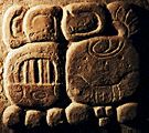 Glyph L11 katun pitzal "a katun of ballplaying" -- Schele, 1988 it was a katun of maize -- Robertson, 1985 |