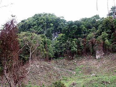 The hilltop behind Alvaro Obregon where the cave of the wooden box and the Precolumbian ruins are found. June 2002. (Photo: Joel Skidmore)