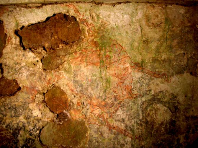 Detail of painting showing a bat in flight, from rear wall of chamber. Photo: David Stuart.