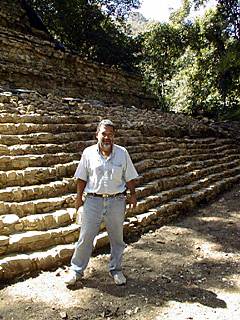 Rudy Larios, Director of Architectural Restoration, stands in front of Temple XIX.