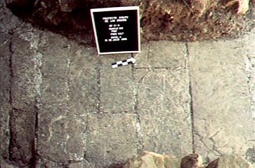 The well-preserved floor of Temple XIX is constructed of carefully cut rectangular limestone slabs.