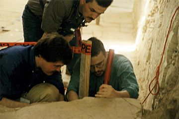 Nikolai Grube, Jorge Perez de Lara (standing) and Simon Martin ponder the inscriptions.