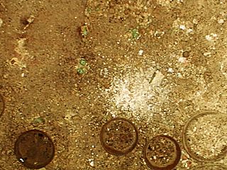 A closer look at the offering plates and jade beads on the floor of the tomb.