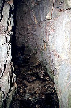 The interior vault walls of the aqueduct in the Picota Complex curve underneath the remains of the plaza level above. (