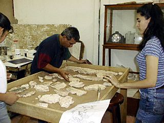 Principal Investigator Alfonso Morales begins to puzzle over the order of the glyphs in the lab.