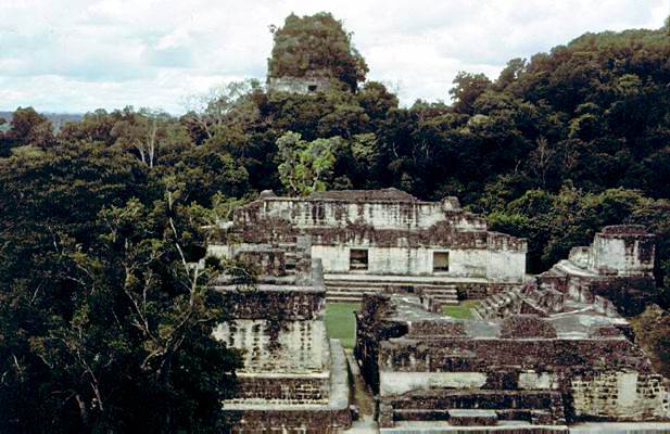 TIkal's Central Acropolis with Temple V in the background; 1982. (Photo: Merle Greene Robertson)